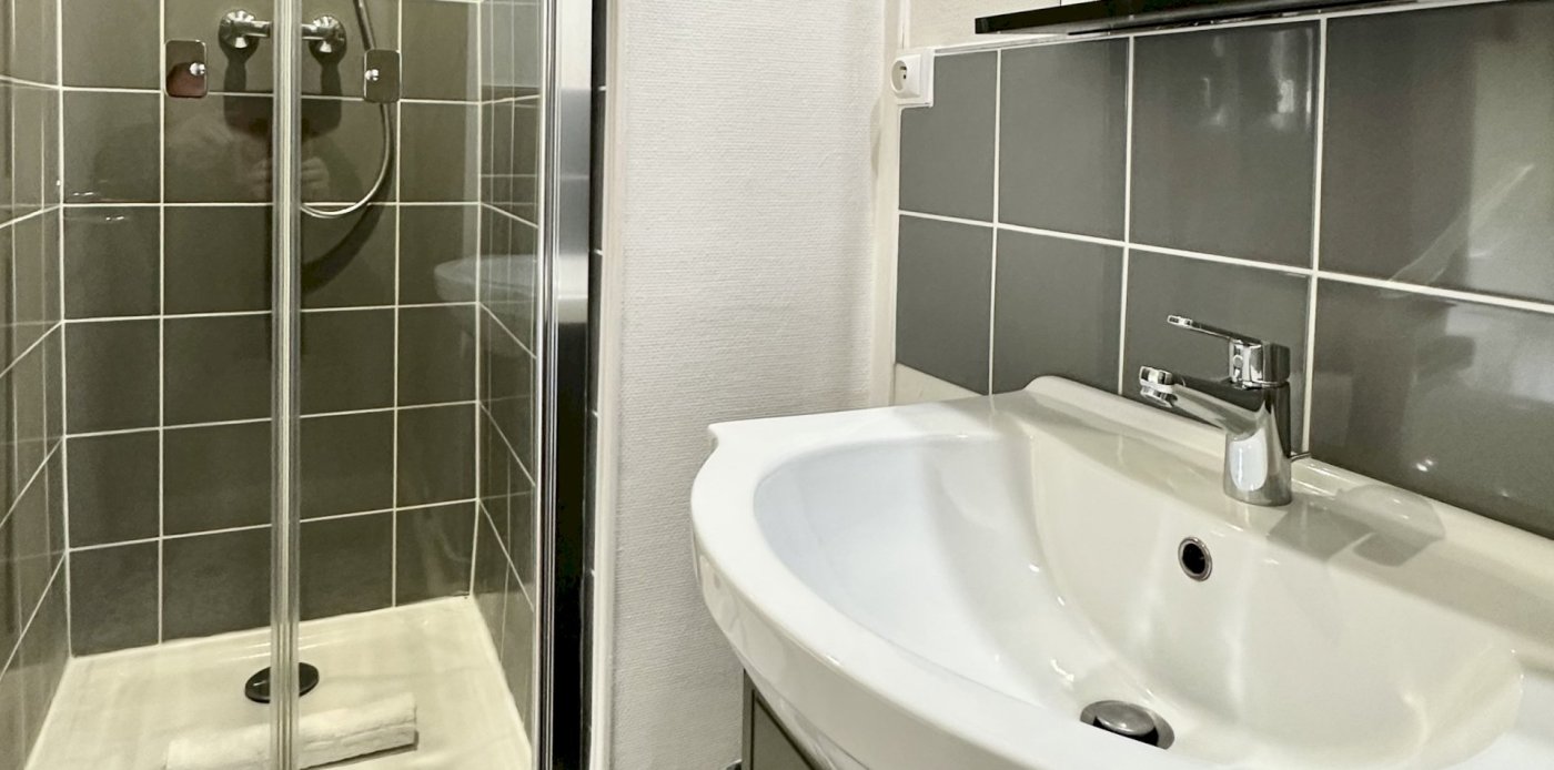 This apartment has a private kitchen with dishwasher, washing machine and dryer. It has one bedroom with a double bed and one bedroom with two single beds (and folding bed can be added). There are 2 bathrooms with showers and toilets. Belle Vue is about a 10 minute walk from school.