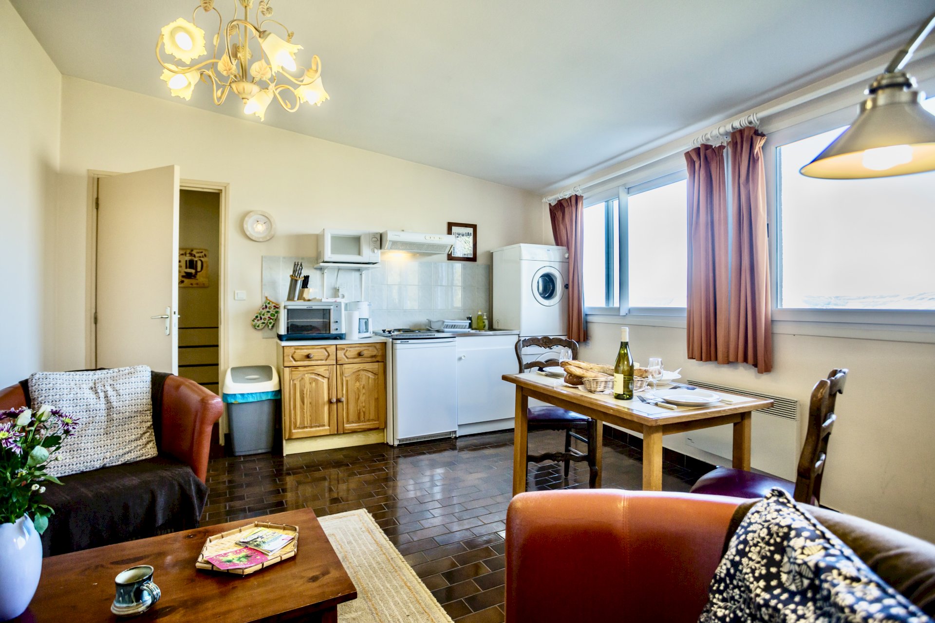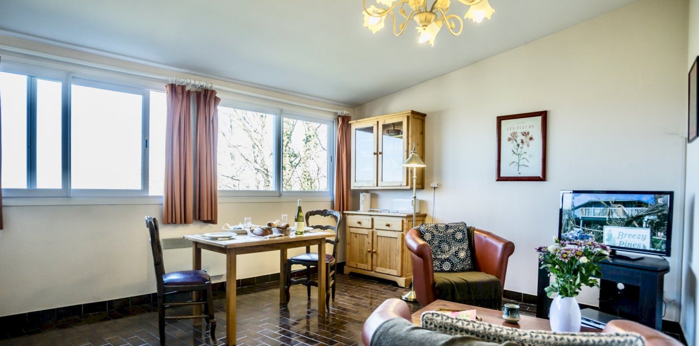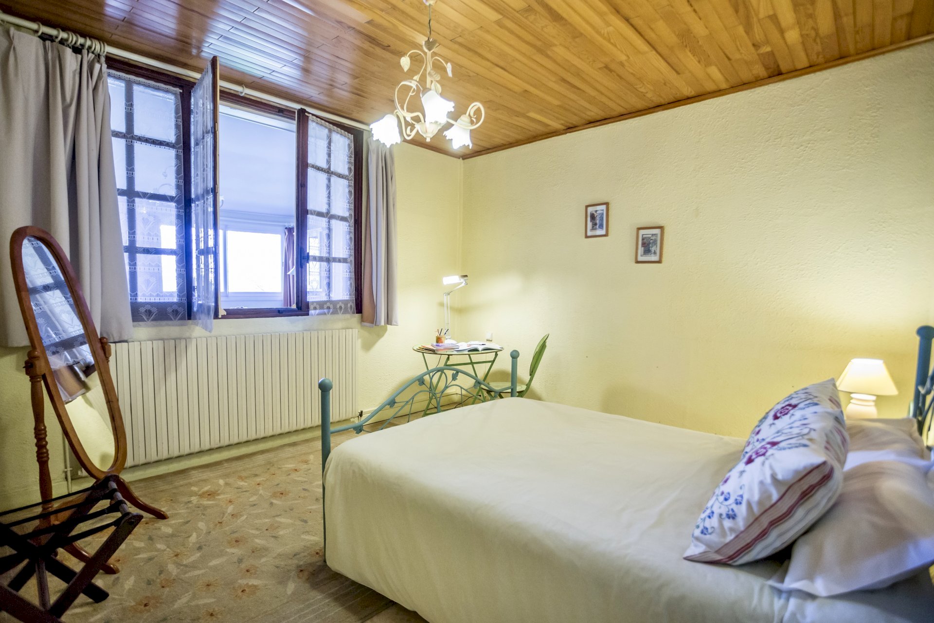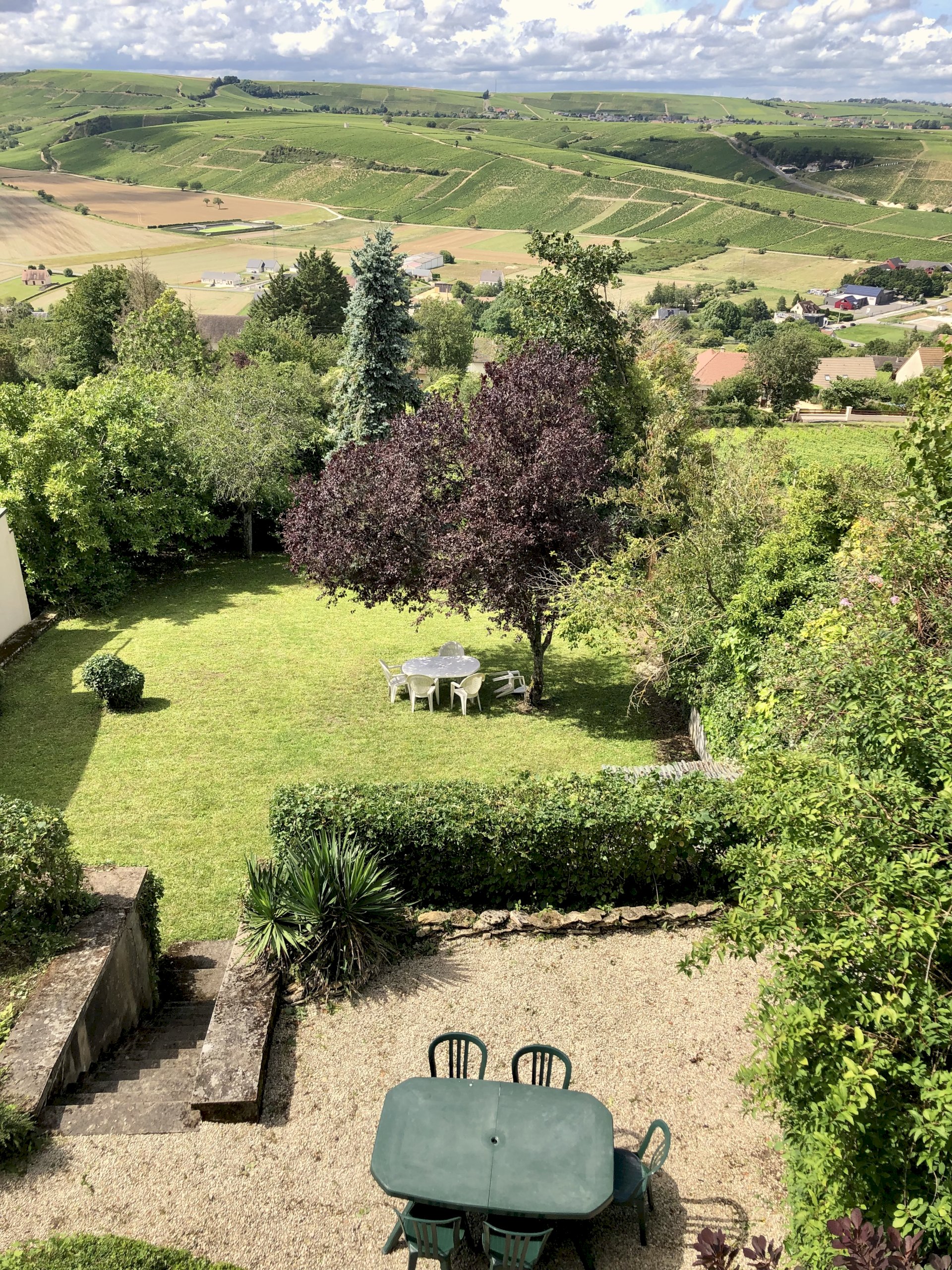 Le Jardin’s wide bay windows make this ground floor apartment spacious and airy. Seeking inspiration? Beautiful panoramic views and gorgeous sunsets over Sancerre’s famous vineyards are yours to enjoy anytime of year! A large walled garden with patio and barbeque is at your disposal. This apartment has 1 double bed and a folding bed can be added if needed; of course you have your own washer and dryer for laundry needs. Le Jardin is about a 10 minute walk from school.