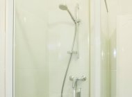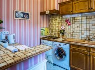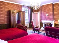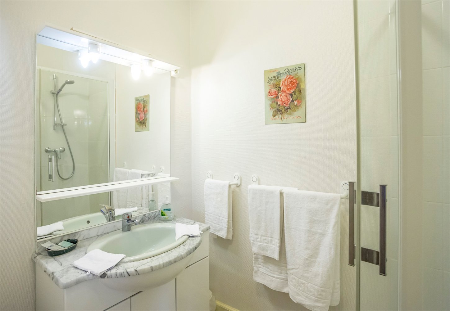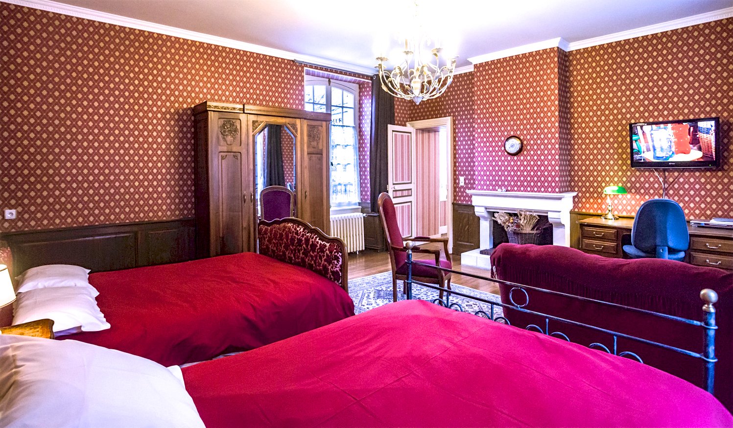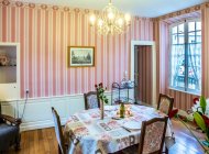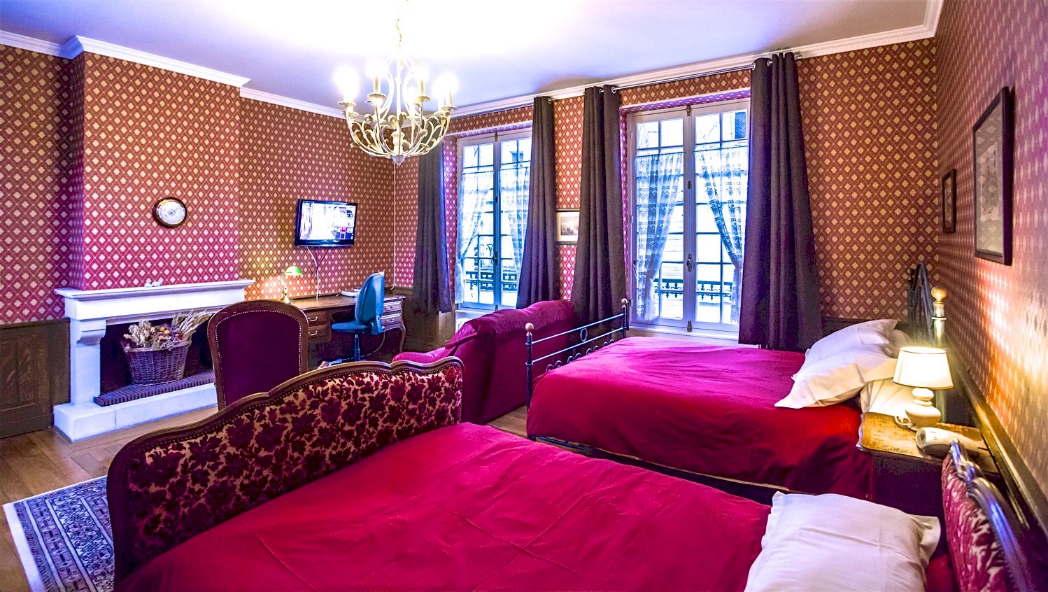 This romantic 550 square feet (51 M2) residence is ideal for a couple seeking both privacy and space. An enormous bedroom with oak wainscoting has 2 double beds. A 19th century stained glass chandelier graces the foyer. A full-sized kitchen has everything you need. A washing machine and dryer are provided. Modern bathroom has full-sized shower. There are beautiful views from every window of the half-timbered houses surrounding the square and the landscaped courtyard below.